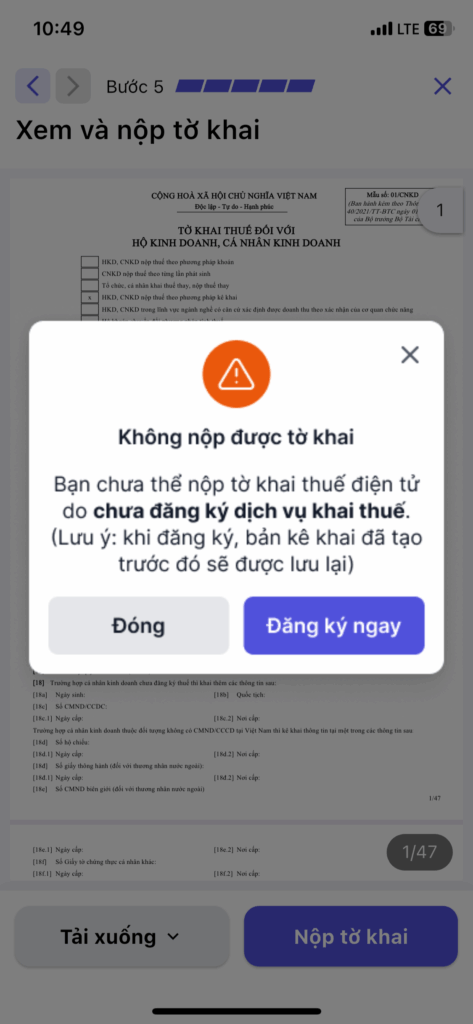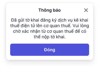 Bước 1: Sau khi nhấn Nộp tờ khai, hệ thống sẽ hiển thị thông báo → nhấn Đăng ký ngay