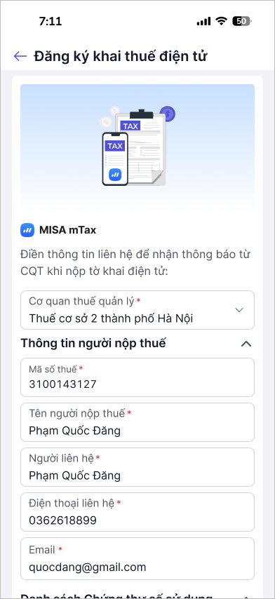 - Phần mềm tự động điền thông tin người nộp thuế theo dữ liệu đã có.