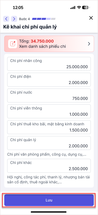 – Phần mềm tự động tổng hợp chi phí từ các phiếu chi phát sinh trong kỳ kê khai, phân chia theo từng hạng mục