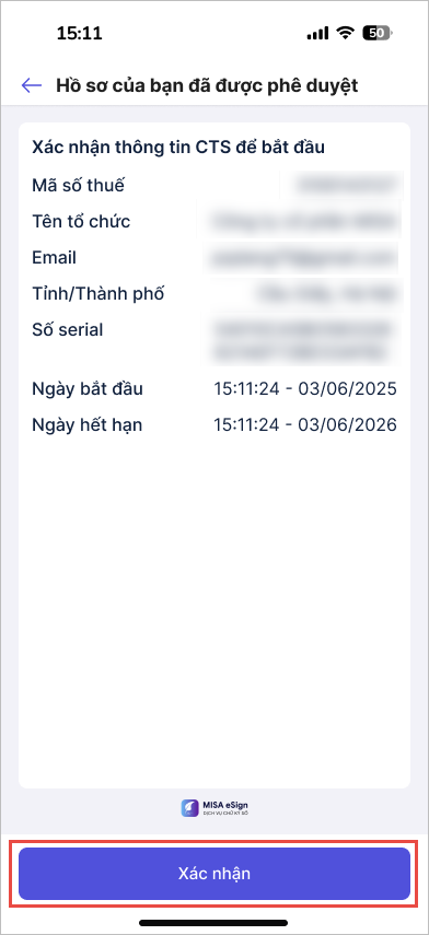- Sau khi hồ sơ đăng ký dịch vụ kê khai thuế điện tử được duyệt, thực hiện Xác nhận chữ ký số được cấp