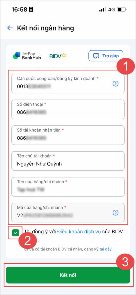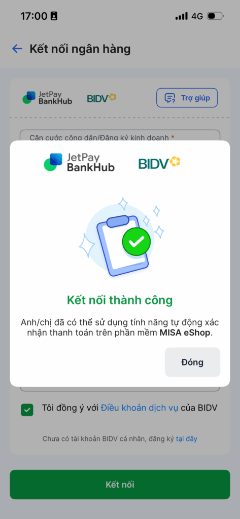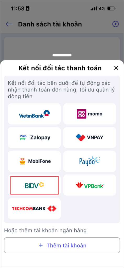 4. Kết nối đối tác thanh toán BIDV trên Mobile