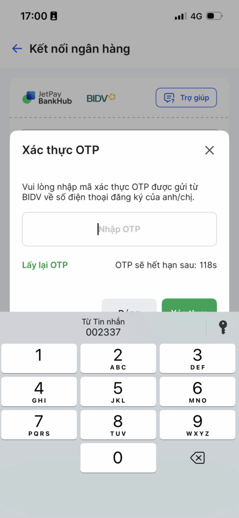 Kết nối đối tác thanh toán BIDV trên Mobile