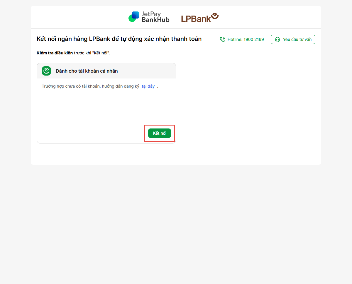 Hiện nay, để đăng ký và sử dụng ngân hàng điện tử JetPay Bankhub vui lòng liên hệ số điện thoại hotline 1900 2169.
