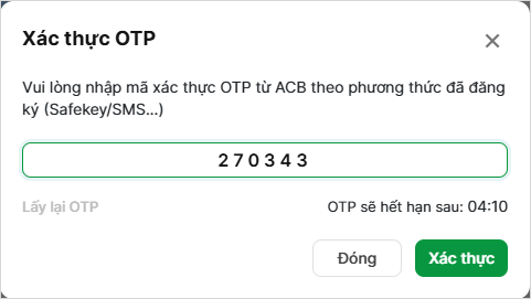 Bước 5: Nhập mã OTP xác thực tài khoản