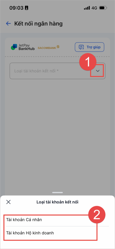Bước 4: Chọn Loại tài khoản ngân hàng