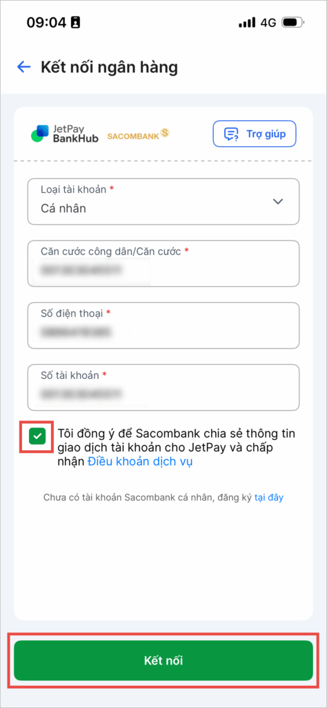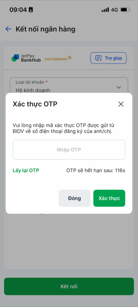 Bước 6: Thực hiện xác thực với ngân hàng để hoàn tất kết nối.