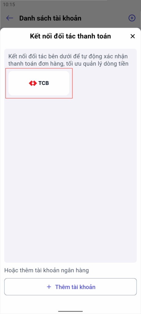 Tài liệu hướng dẫn kết nối tài khoản ngân hàng Ngân hàng Thương mại Cổ phần Kỹ thương Việt Nam – Techcombank (TCB) để thực hiện nhận giao dịch từ thanh toán trực tiếp tại màn hình bán hàng và trực tiếp gạch nợ trên phần mềm.