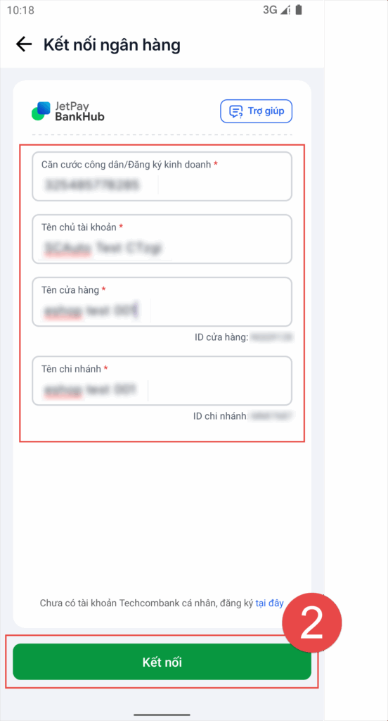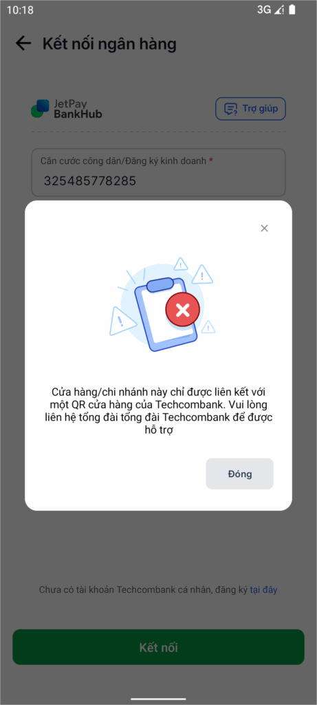 Lưu ý: 1 cửa hàng/chi nhanh chỉ được liên kết với 1 cửa hàng Techcombank, nếu đã kết nối liên hệ với tổng đài 1800 1588 822 của Techcombank để được hỗ trợ.