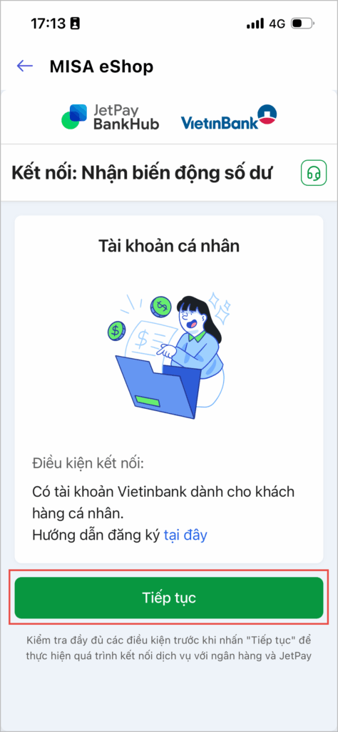 Bước 4: Đọc điều kiện kết nối -> Sau đó nhấn Tiếp tục.