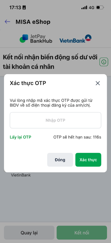 - Nhận mã xác thực để để hoàn tất kết nối.
