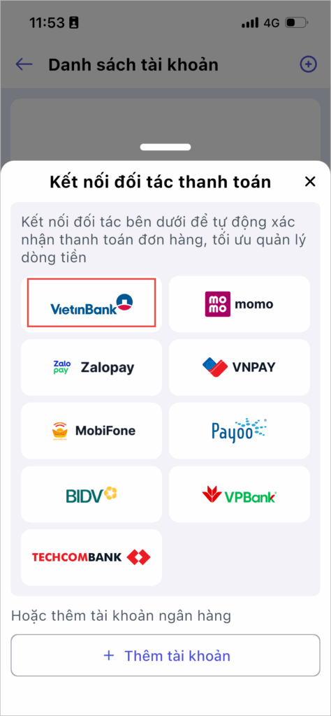 Bước 3: Chọn ngân hàng Vietinbank