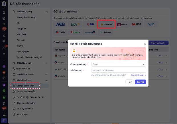 Bước 1. Chọn chức năng Đối tác thanh toán