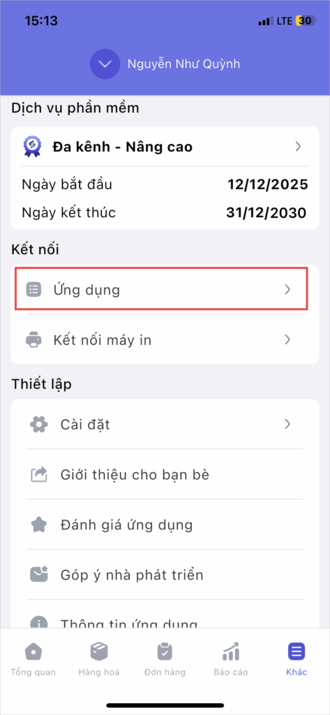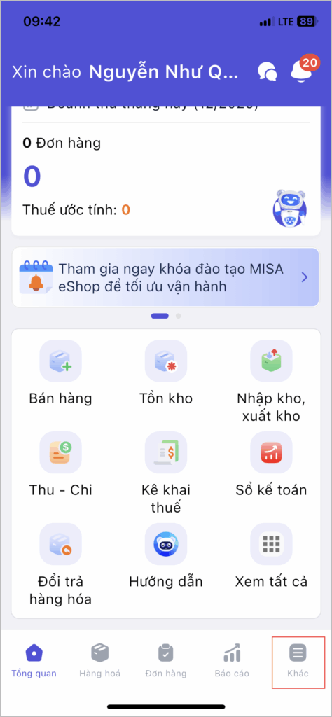 Bước 1: Tại màn hình tổng quan, chọn mục Khác