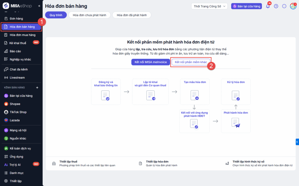 Cách 1: Truy cập trang Hóa đơn bán hàng, chọn Kết nối phần mềm khác.