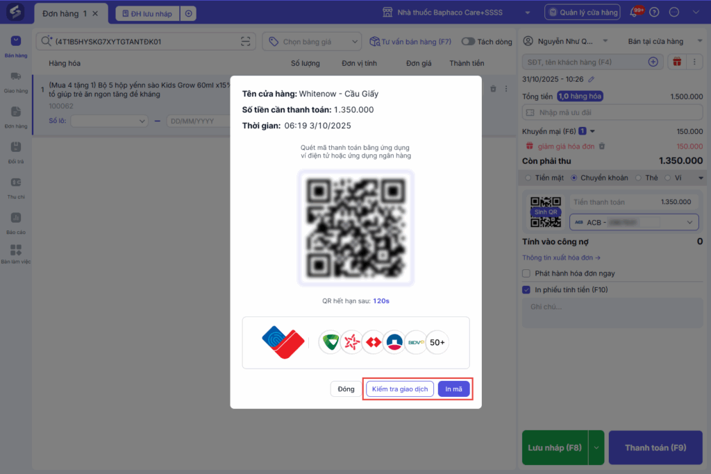 - Nhấn Kiểm tra giao dịch để cập nhật trạng thái thanh toán của khách.