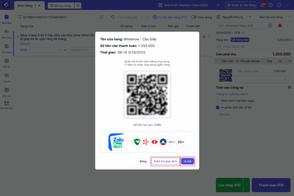 - Nhấn Kiểm tra giao dịch để cập nhật trạng thái thanh toán của khách.