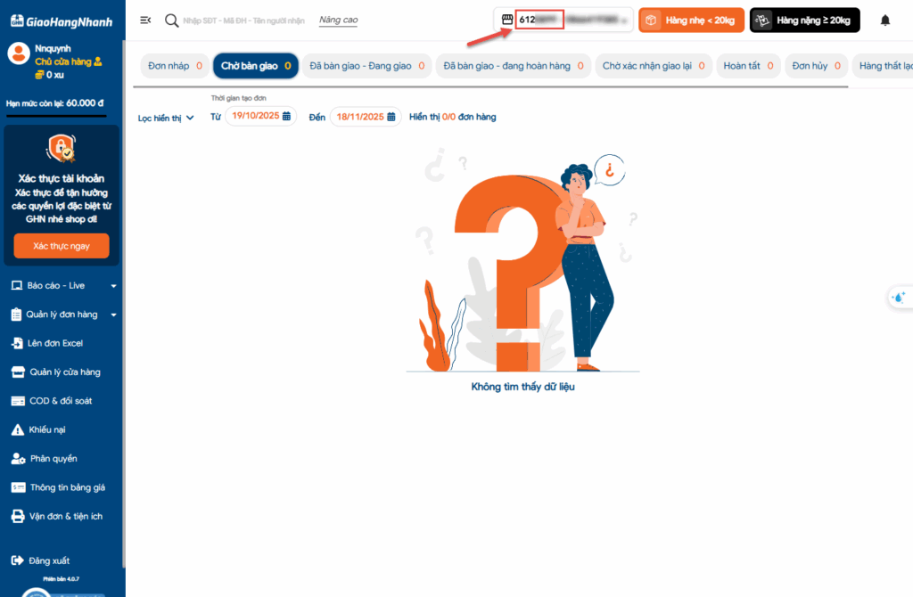 Lưu ý: Lấy mã cửa hàng tại trang quản lý Giao hàng nhanh.