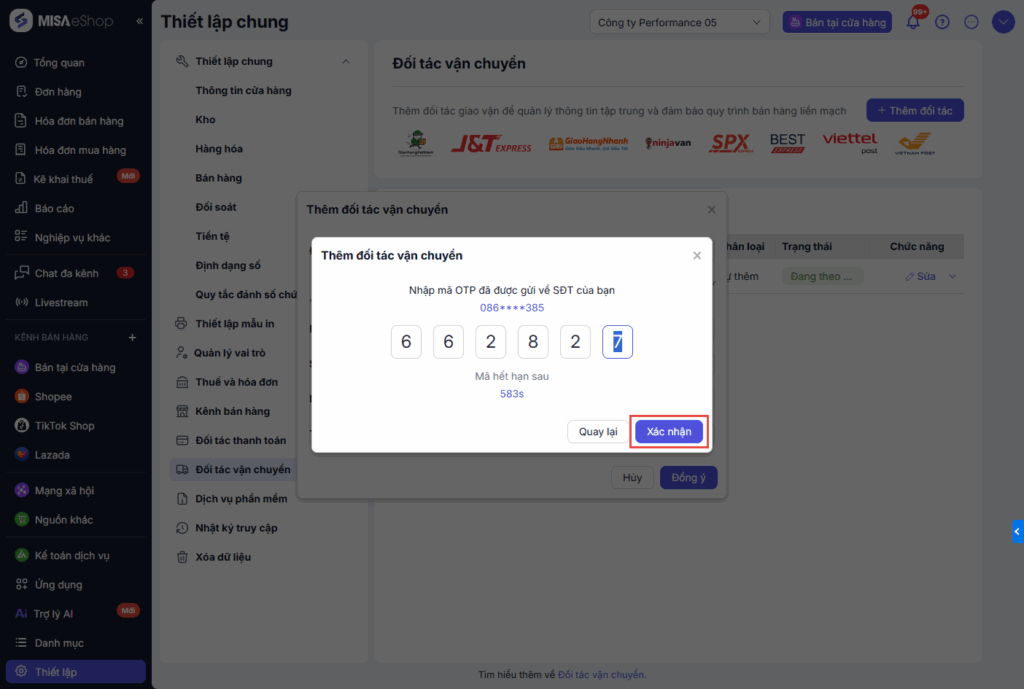 Bước 4: Thiết lập đối tác giao hàng