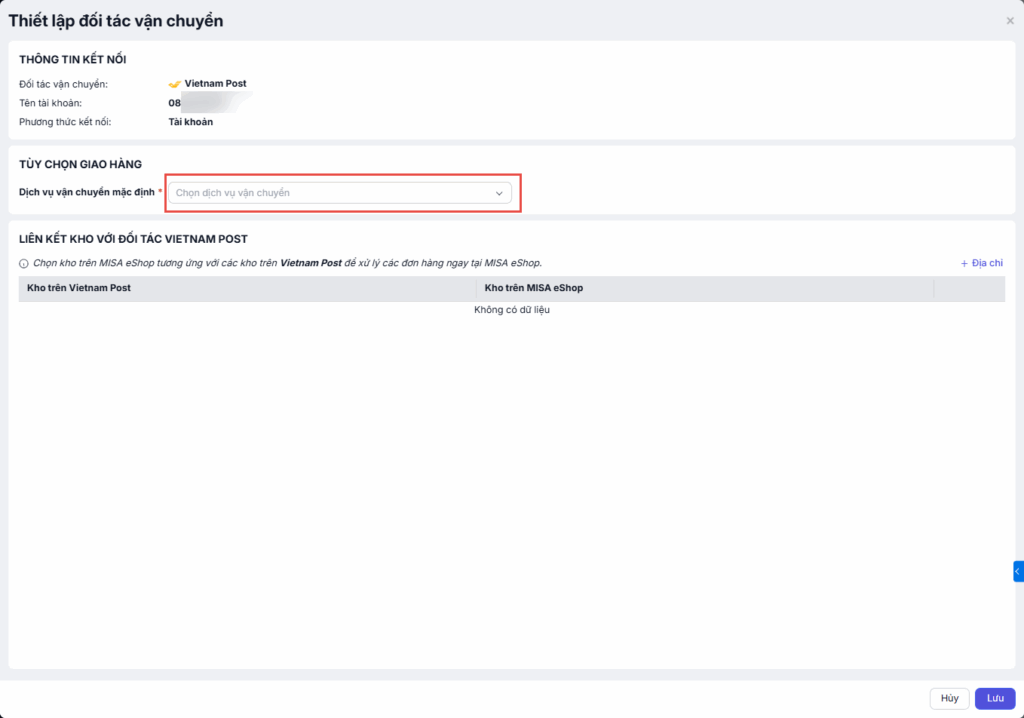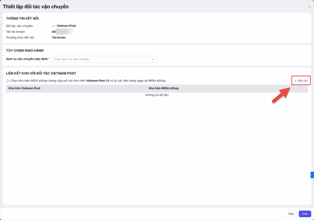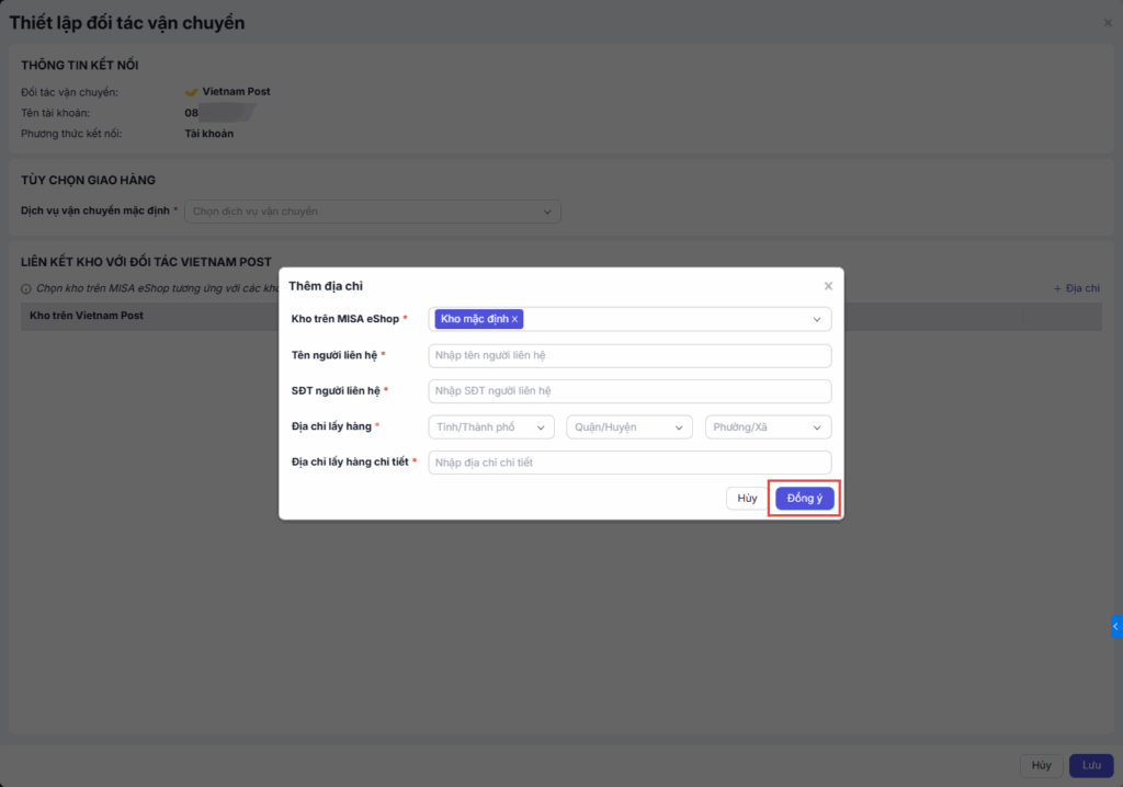 Bước 3: Liên kết kho với đối tác Vietnam Post