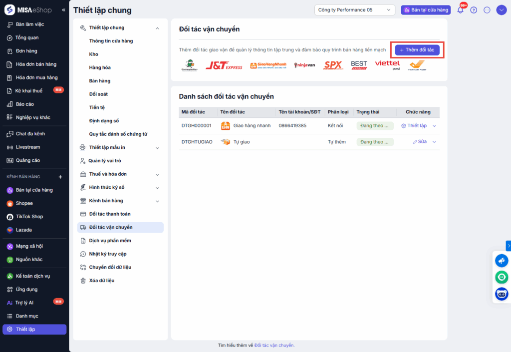 Bước 2: Nhấn Thêm đối tác