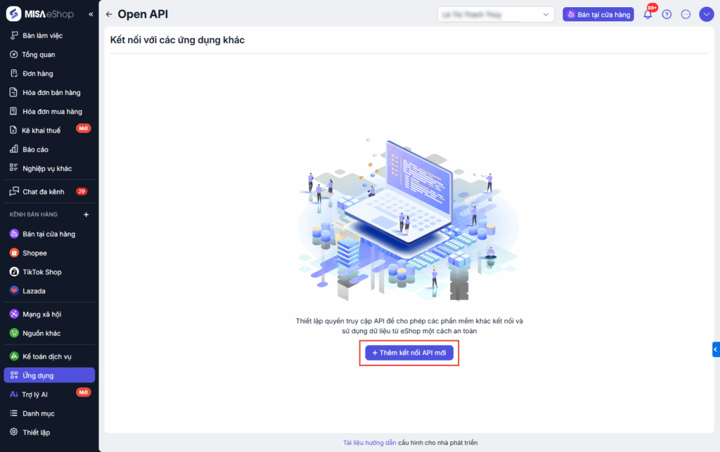 4. Kết nối với các ứng dụng khác qua Open API trên máy tính