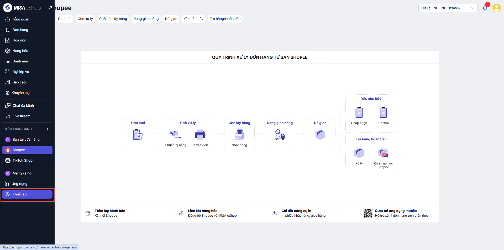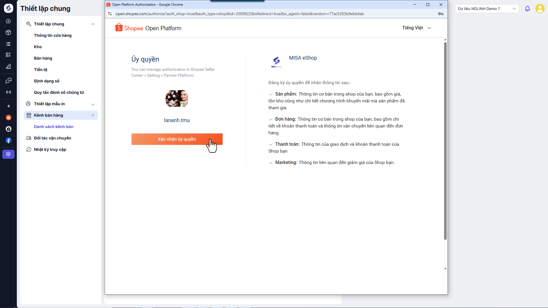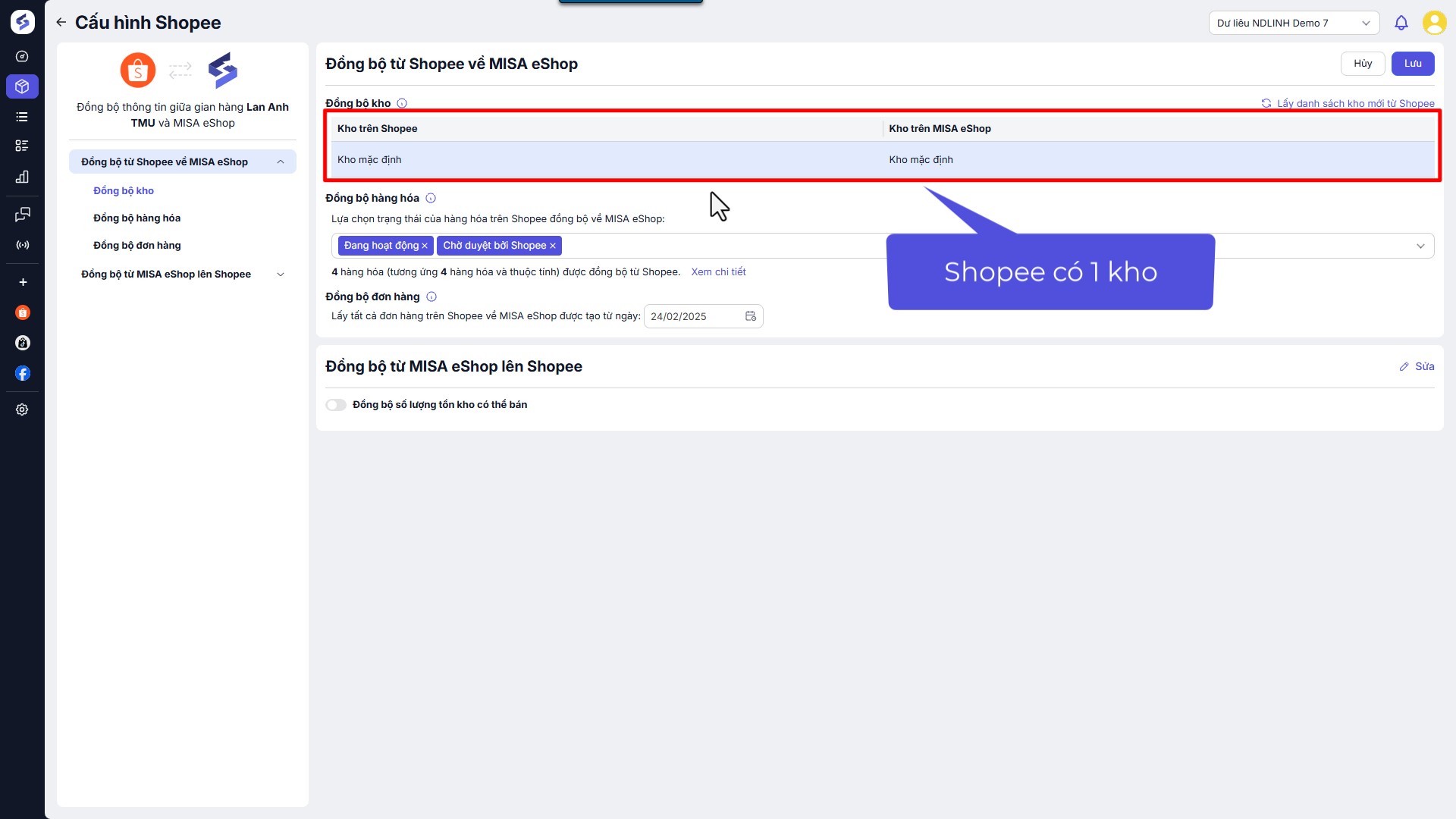 2.4 Đồng bộ kho, hàng hóa, đơn hàng trên Shopee về MISA eShop