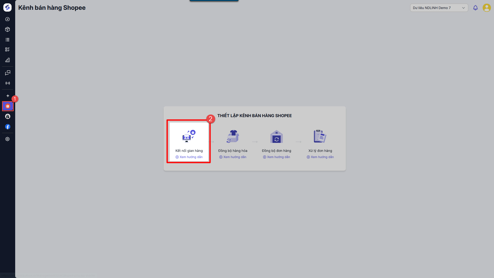 - Màn hình quy trình thiết lập kênh bán hàng Shopee sẽ hiển thị. Nhấn Kết nối gian hàng.