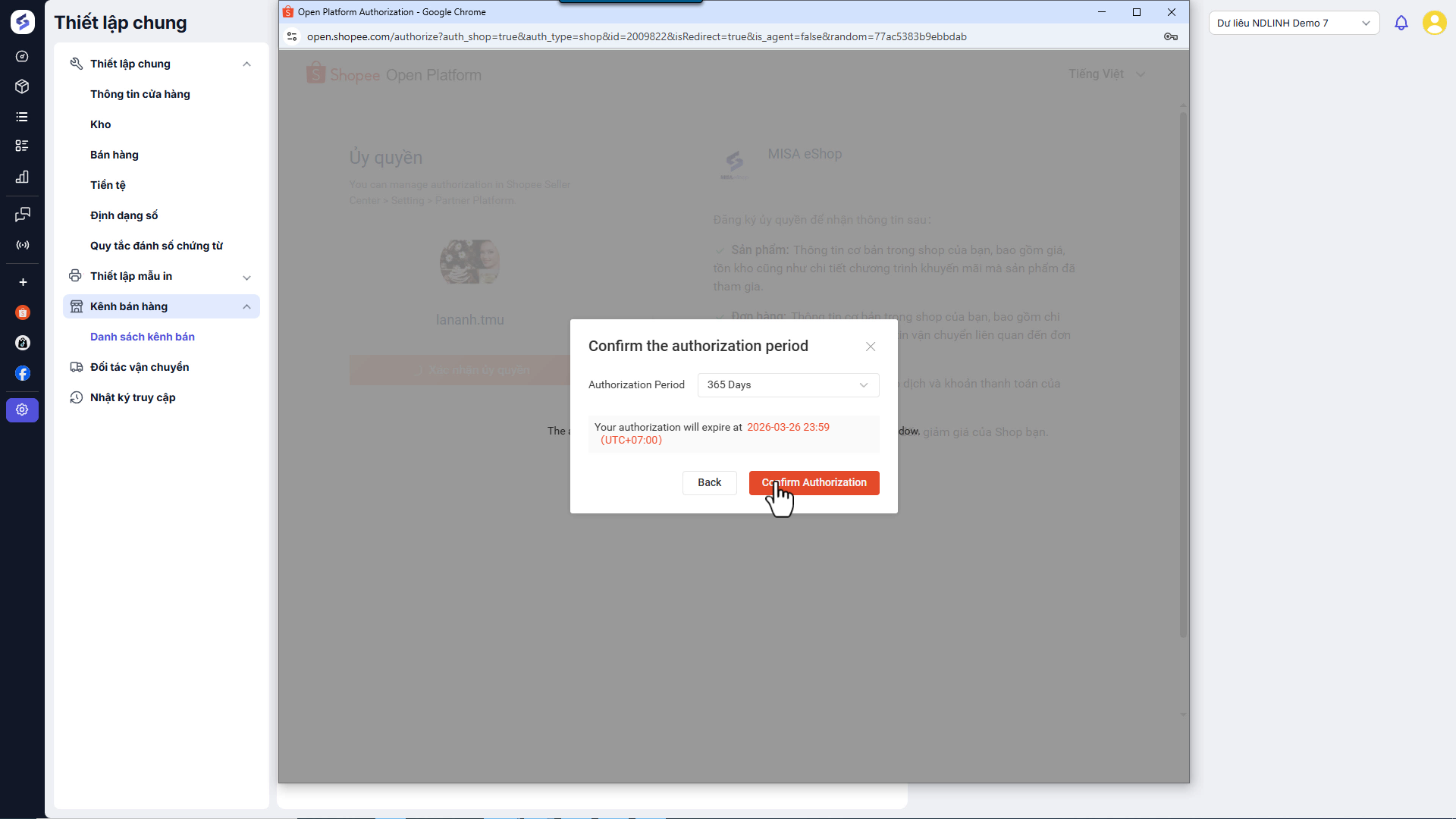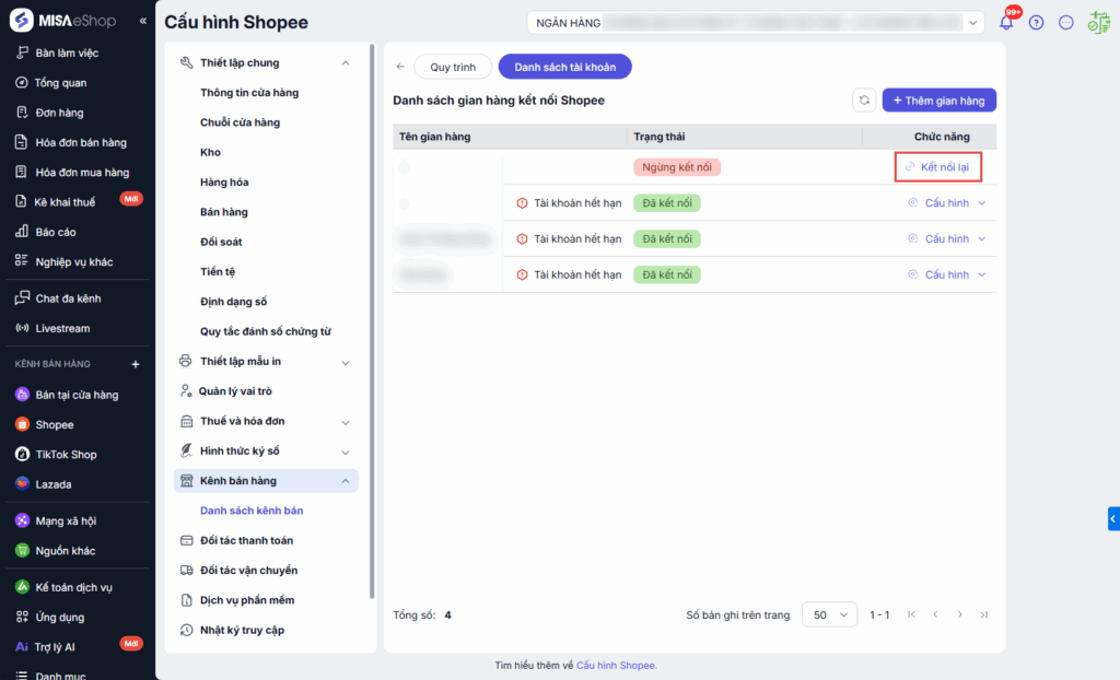 Kết nối lại tài khoản Shopee khi hết hạn phiên kết nối
