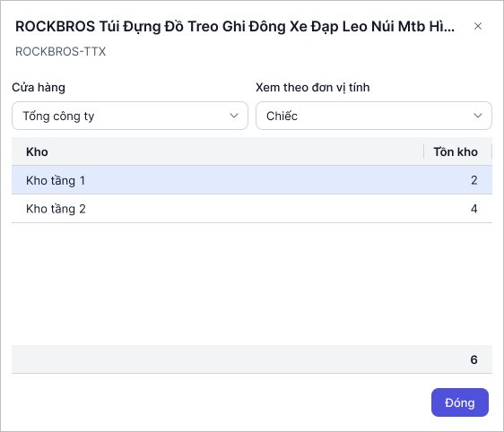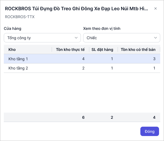 - Khi nhấn vào số lượng tồn kho để xem chi tiết thông tin tồn kho của hàng hóa: