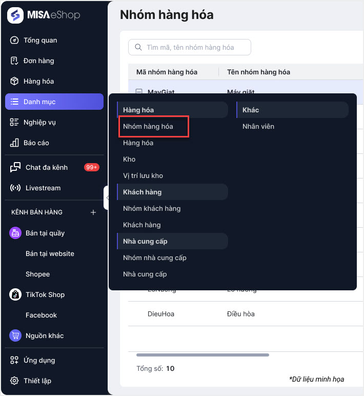 Bước 3: Xem nhóm hàng hóa