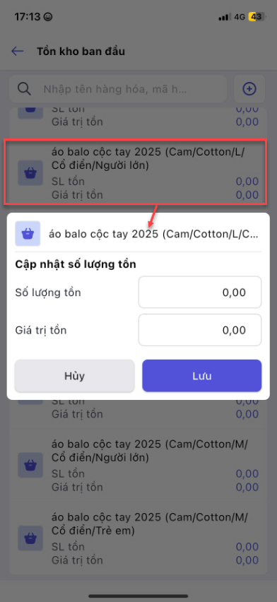 Bước 4. Lưu thông tin tồn kho ban đầu