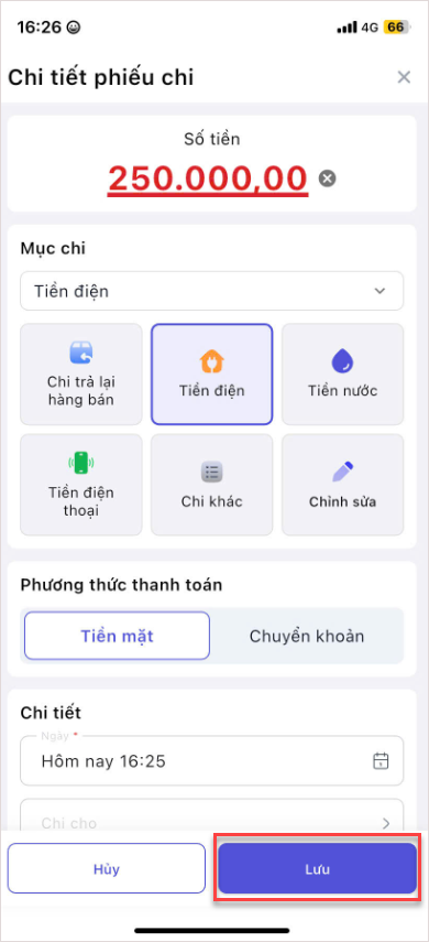 Bước 2: Chọn chi tiền
