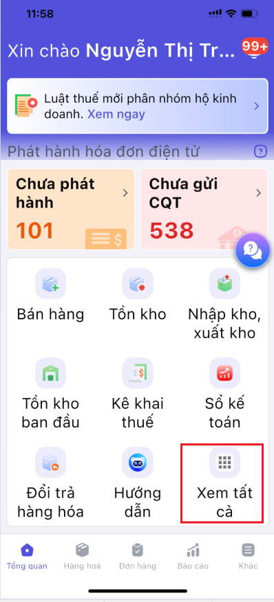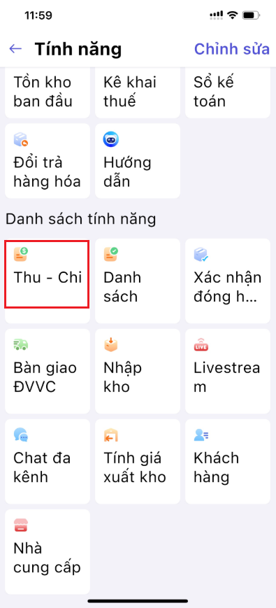 Tại màn hình Tổng quan, nhấn vào mục Xem tất cả/ chọn mục Thu-chi.