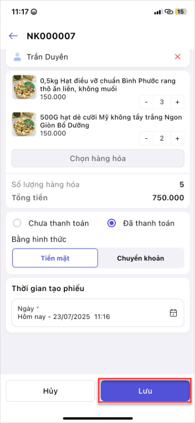 Tại giao diện sửa phiếu, có thể thay đổi các thông tin như: Hàng hóa, số lượng, thời gian tạo phiếu,…
