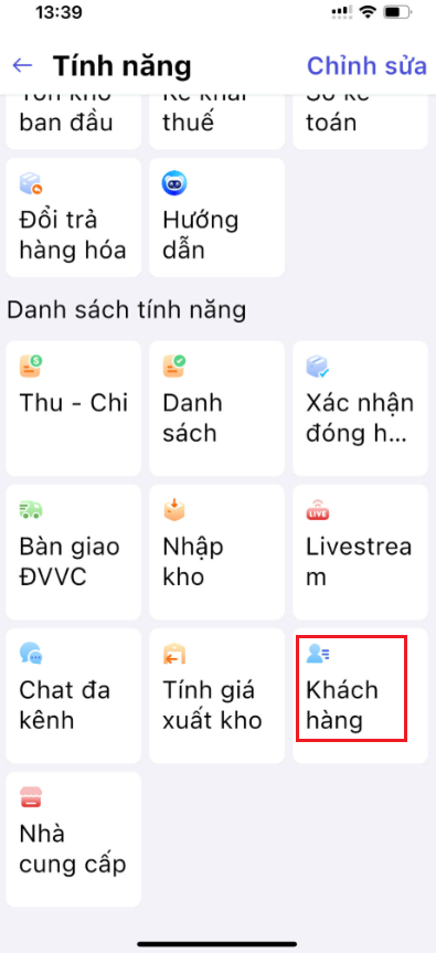 Bước 2: Tại mục danh sách tính năng chọn Khách hàng