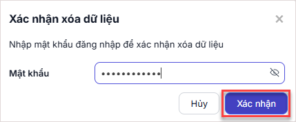 Nhập mật khẩu đăng nhập để thực hiện xóa dữ liệu dùng thử và nhấn Xác nhận.