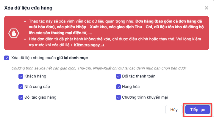 Bài viết hướng dẫn cách xóa toàn bộ dữ liệu đã phát sinh trong quá trình dùng thử trên phần mềm quản lý cửa hàng.