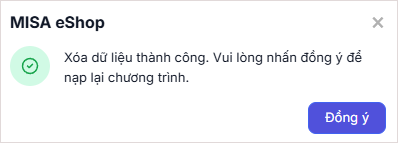 Màn hình hiển thị dữ liệu cửa hàng đã được xóa thành công.