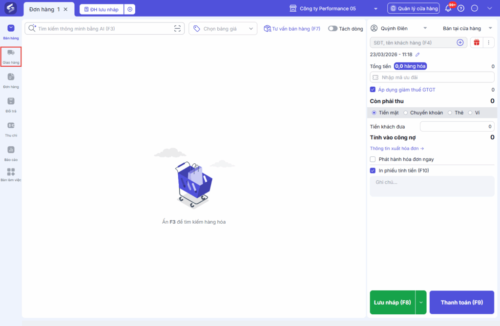 Bước 1: Tại trang Bán tại cửa hàng (POS), chọn Giao hàng