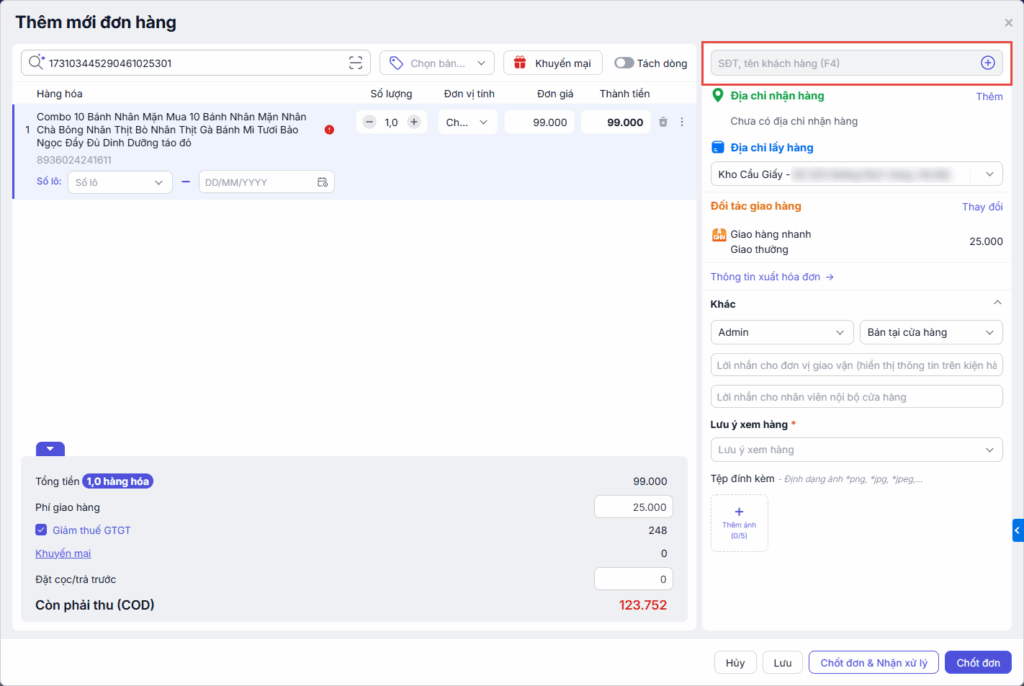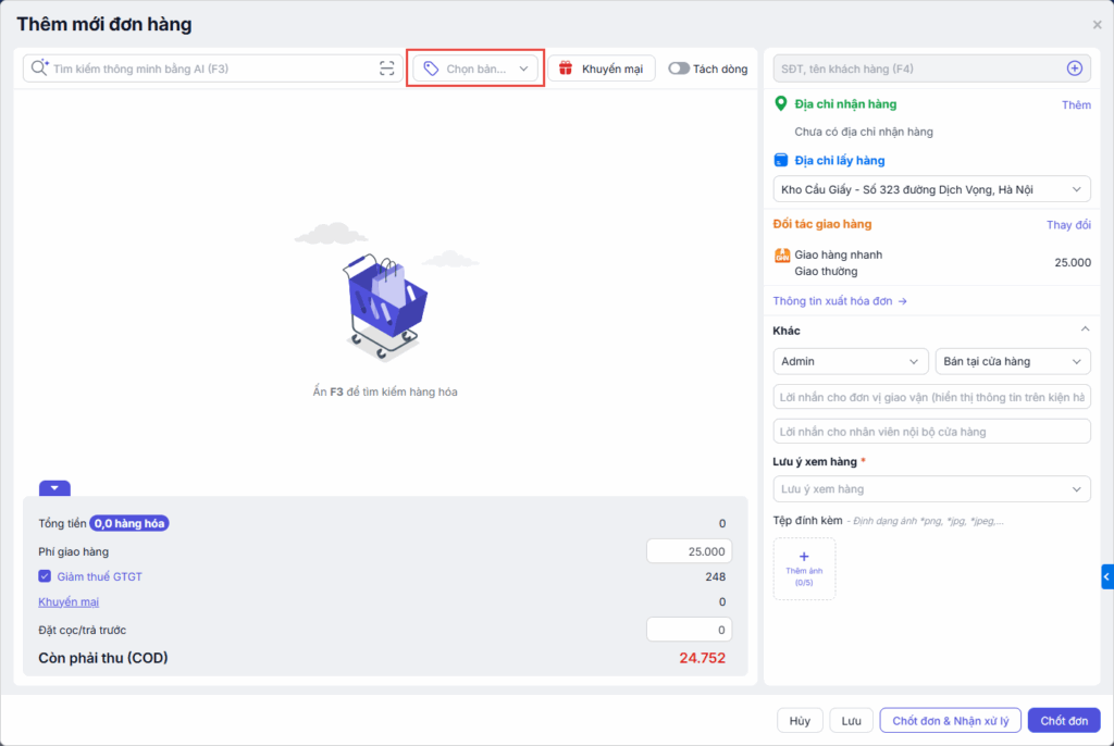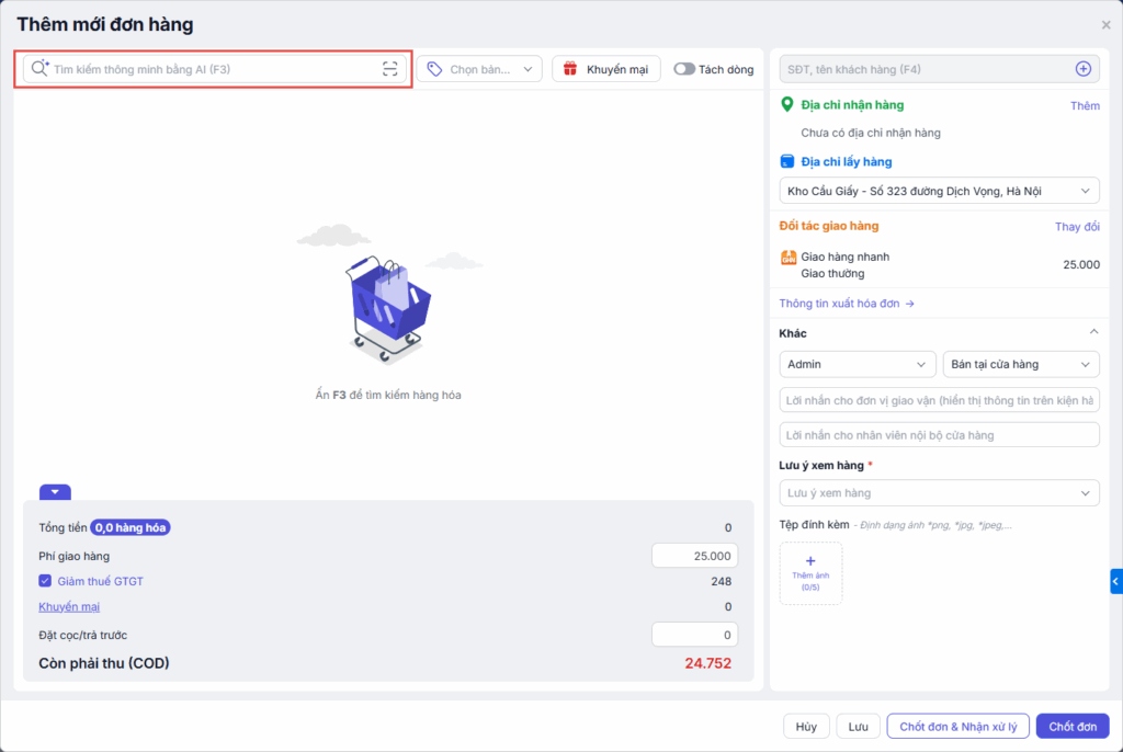 Bước 4: Thêm hàng hóa