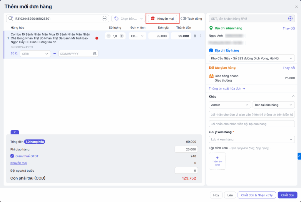 Bước 8: Nhấn Chốt đơn để hoàn tất.