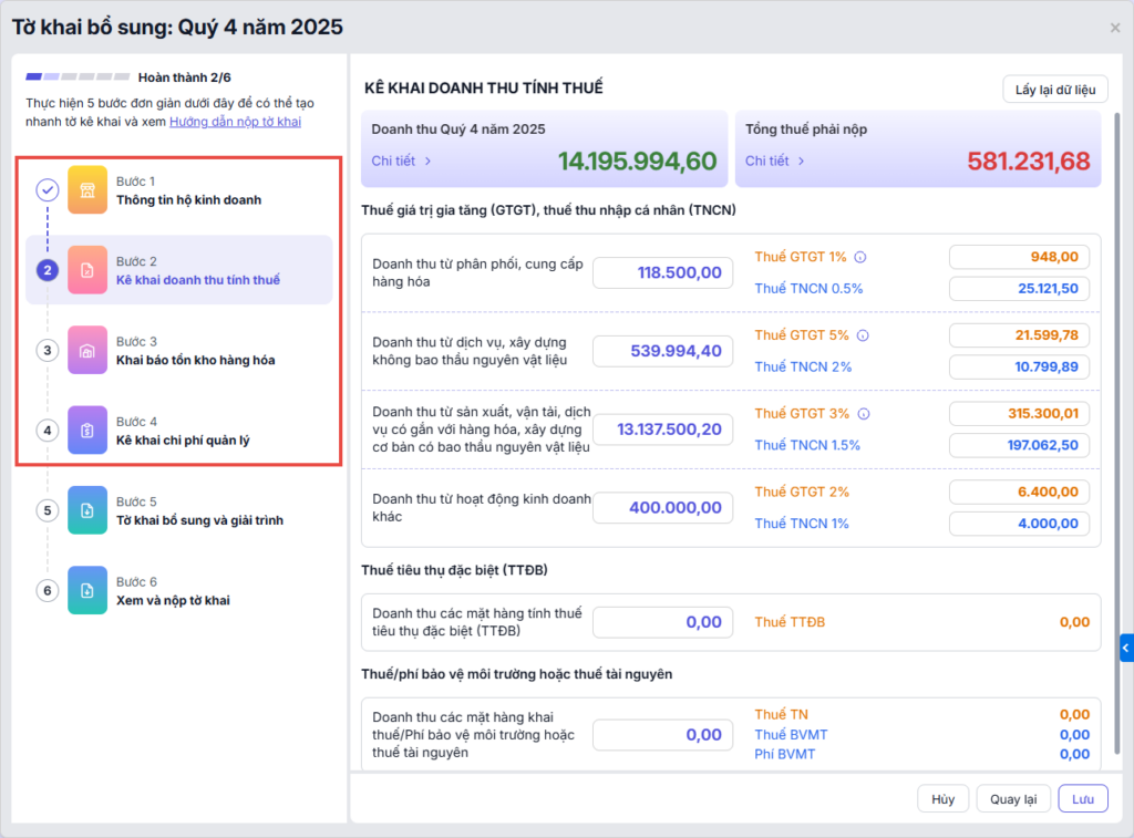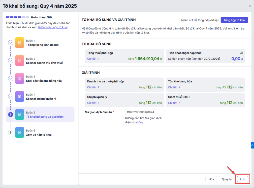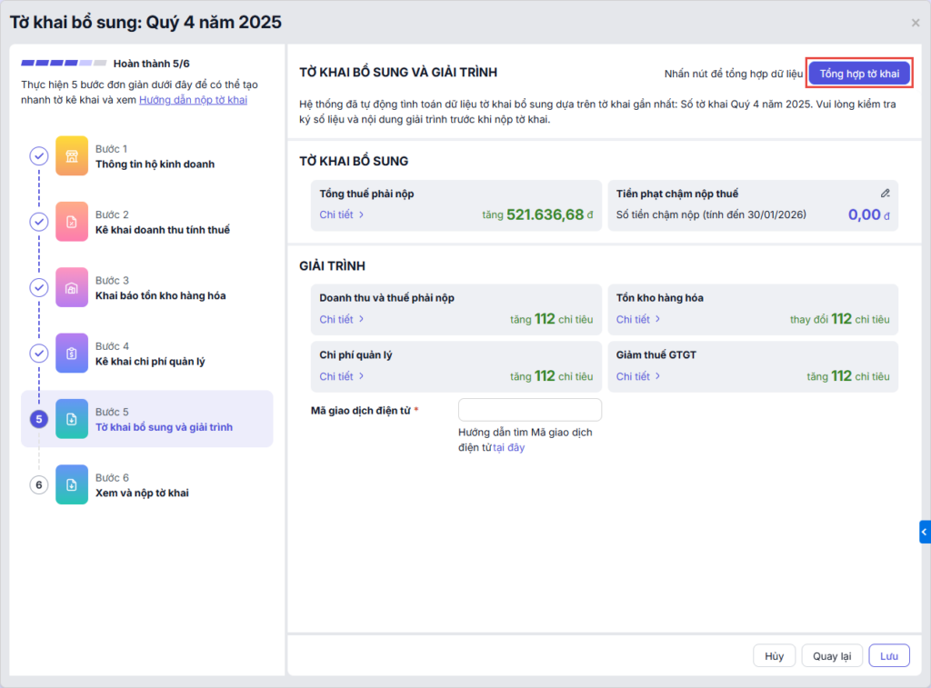 Bước 3: Tổng hợp khai bổ sung