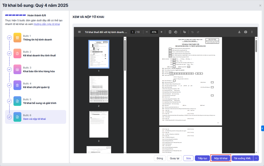 Bước 4: Xem và Nộp tờ khai