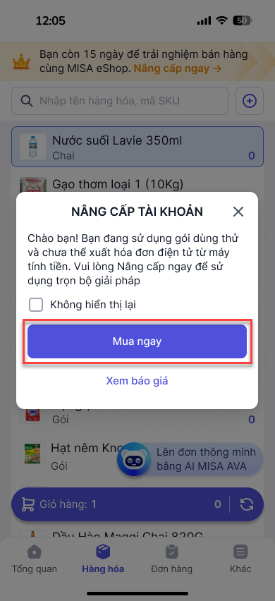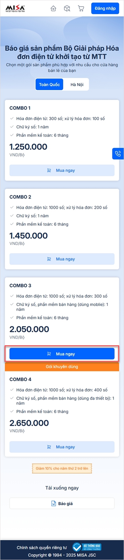 Nhấn Mua ngay tương ứng với gói sản phẩm phù hợp với Cửa hàng