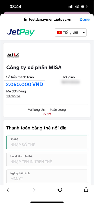 • Nhập thông tin về thẻ dùng để thanh toán.