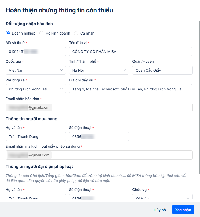 - Sau đó, điền đầy đủ thông tin vào giao diện nếu có chỉnh sửa.