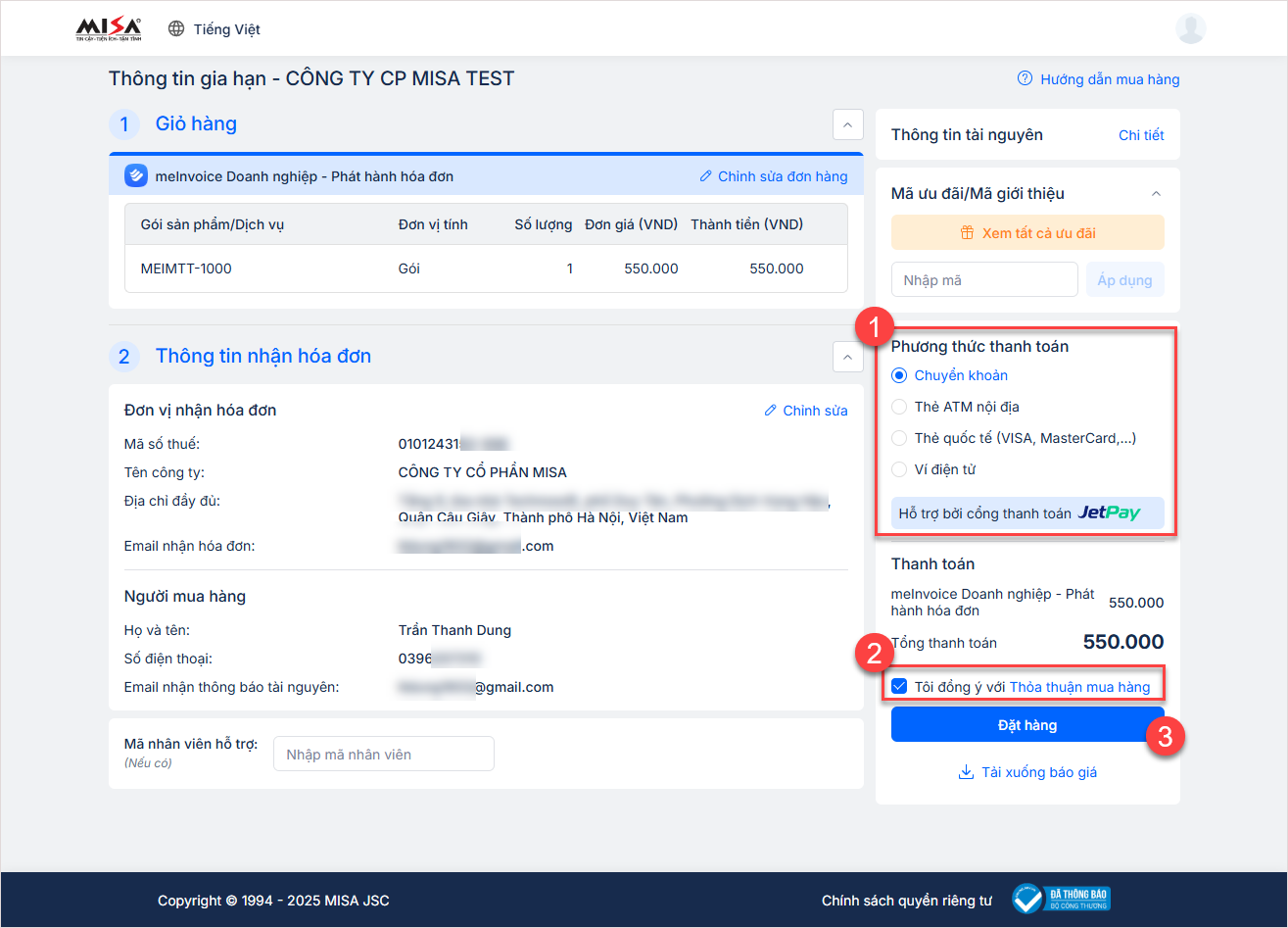 - Tích chọn phương thức thanh toán.