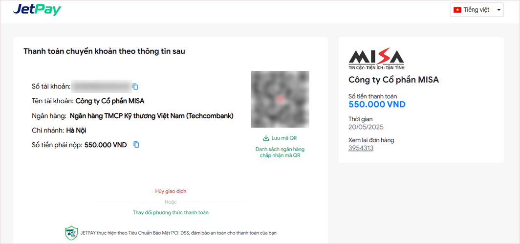 - Thực hiện quét QR code hoặc chuyển khoản theo thông tin để thanh toán.