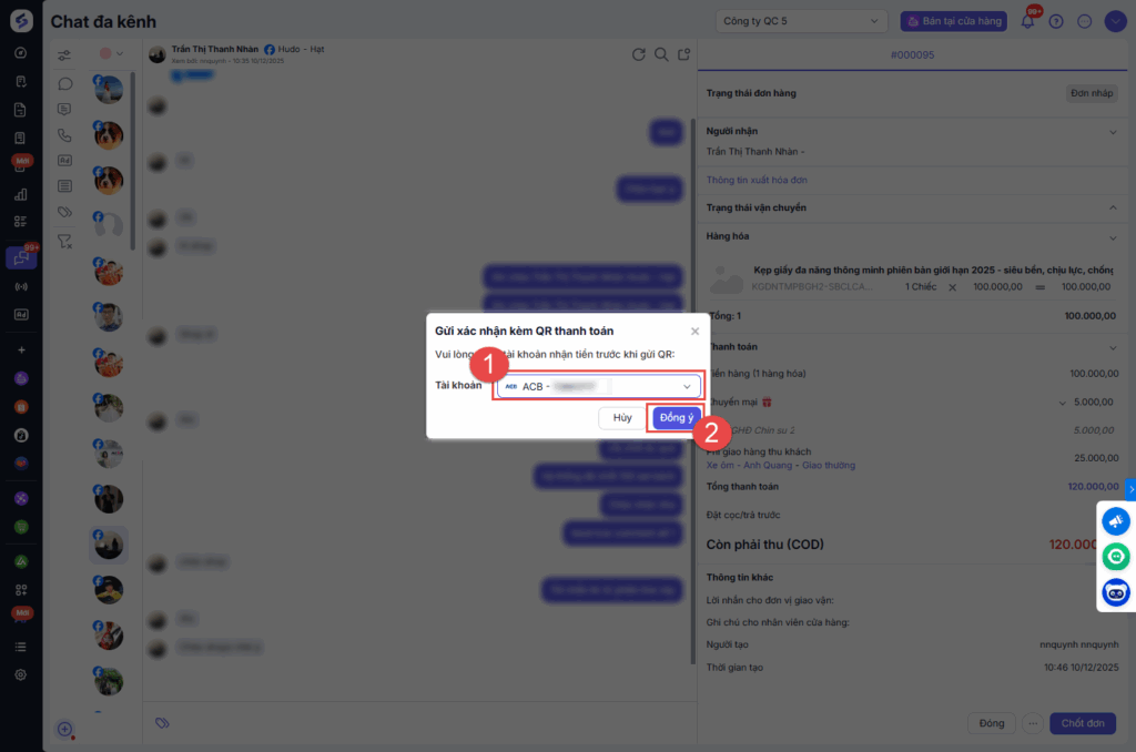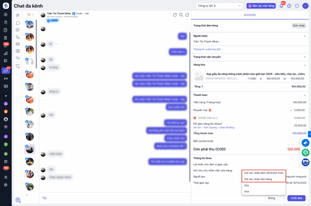 – Hoặc Gửi xác nhận kèm mã QR thanh toán để gửi lại chi tiết đơn hàng cho khách kiểm tra.