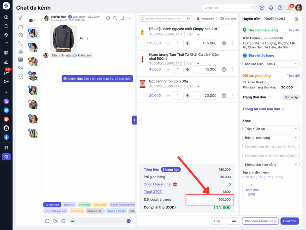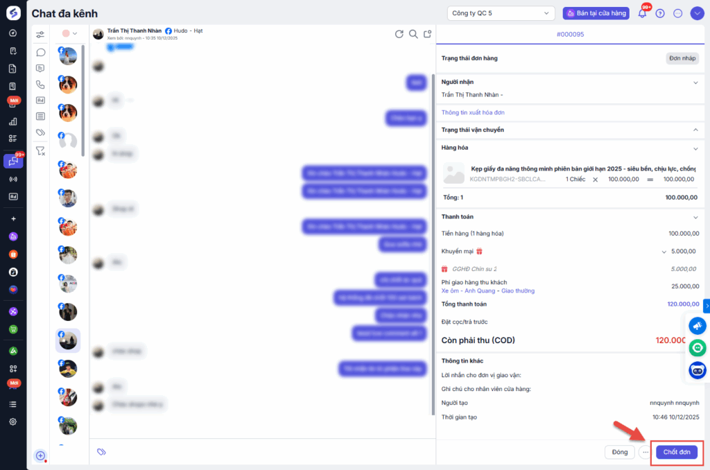 – Sau khi khách phản hồi xác nhận, nhấn Chốt đơn để tạo đơn cho khách